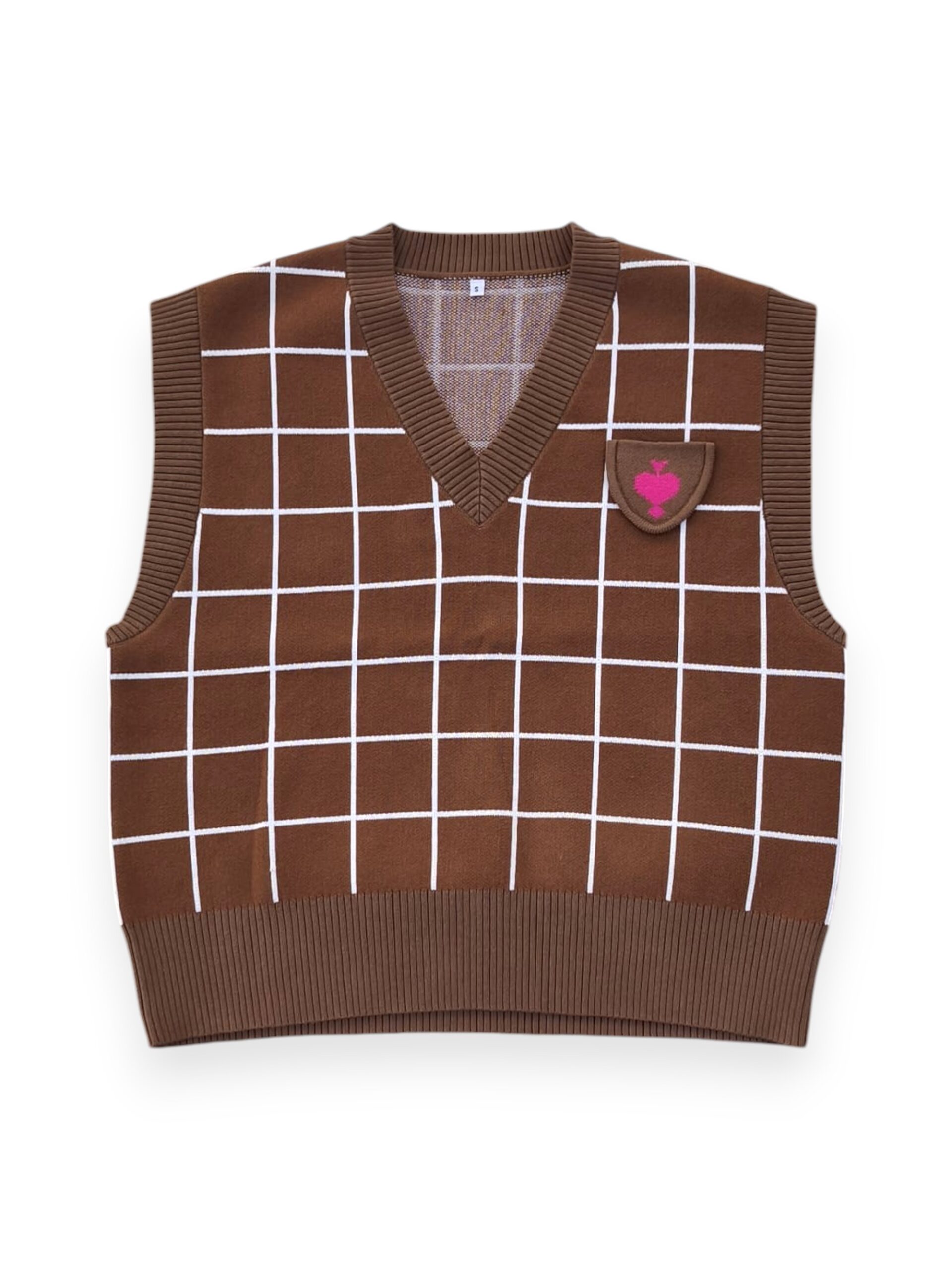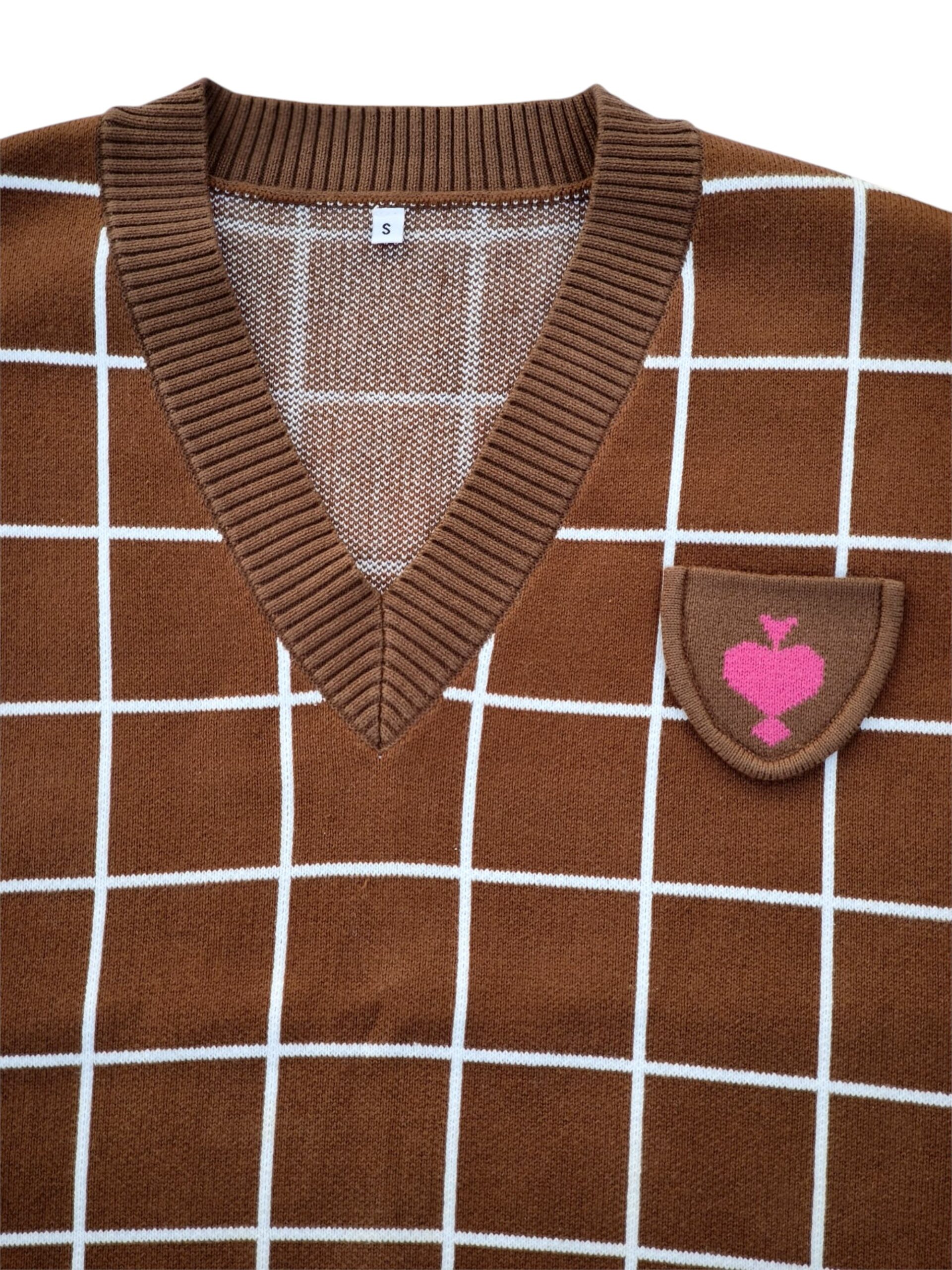 Brown Cotton Vest with Left Pocket and Pink Sagitta Cupidinis Heart